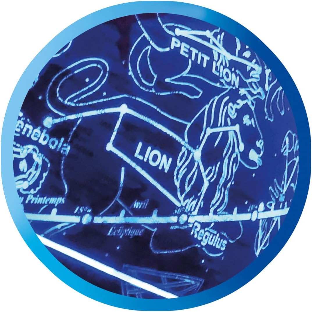 Ööfunktsioon: lüliti vajutamisel kiirgab maakera ja see näitab 88 peamist tähtkuju.