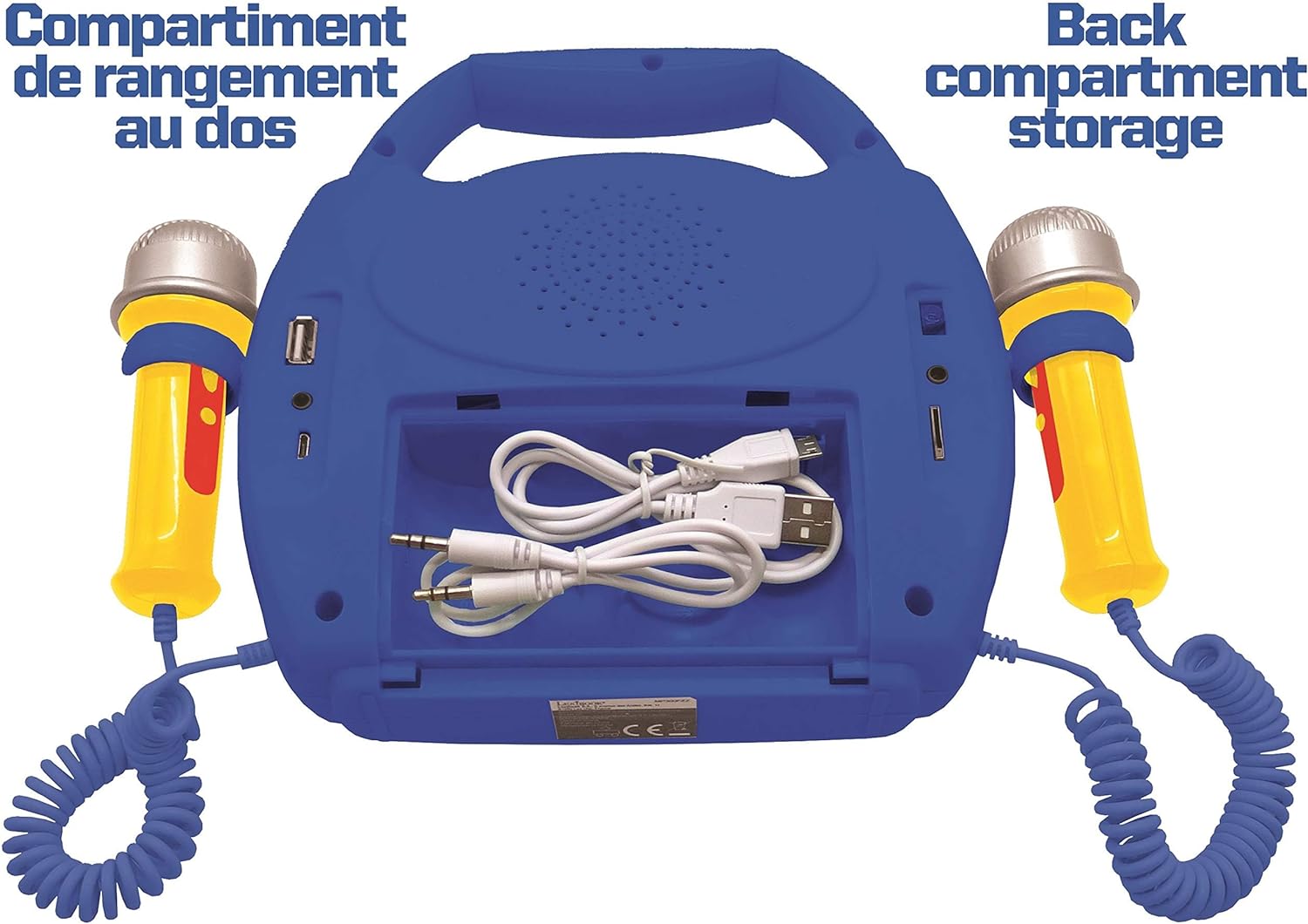 Kaks mikrofoni, seega saab üheaegselt laulda kaks last. Kordusfunktsioon. Helitugevuse reguleerija. Töötab patareidel. Soovitatav vanus 3+