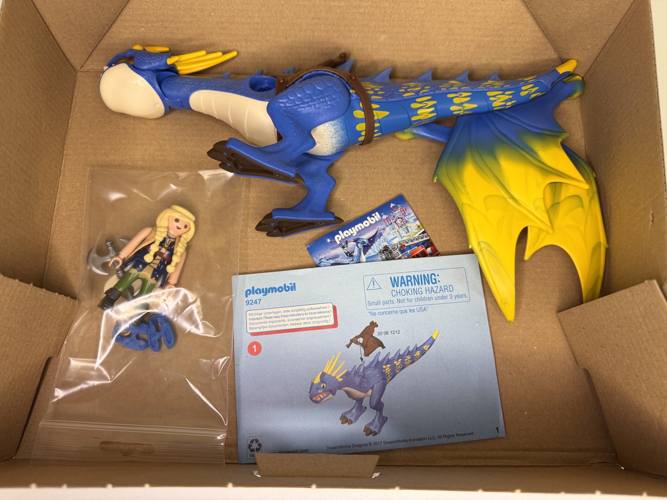 Kotikesed on avatud, detailid on suurepärases seisukorras. Astridi tegelaskuju on asendatud teise Dragons seeria tegelasega.