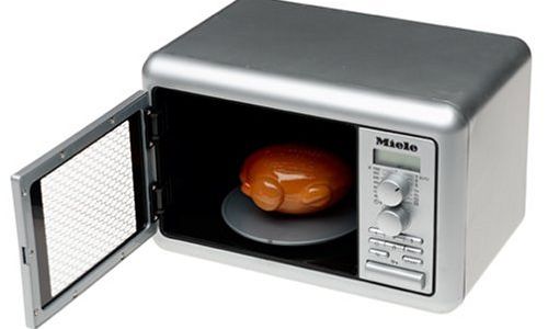 Mikrolaineahjul on pöörlev alus ja valgustus. Kaasas on ka mängu grillkana.