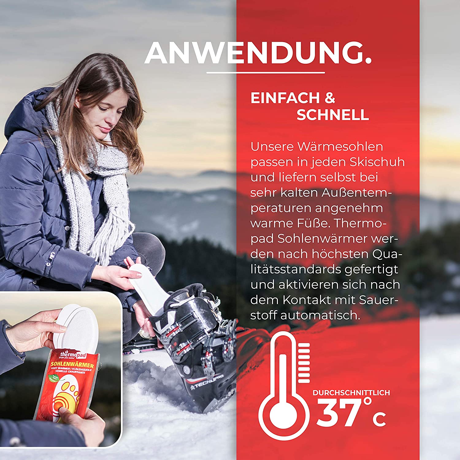 Padi aktiveerub pakendi avamisel õhu toimel ja soojeneb u. 37°C. Aseta soojendusega sisetald saapa sisse ja naudi jalgu soojas.